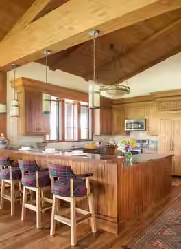 Creeks trickle past and aspen leaves flutter outside this lodge-style property spread out over 3 houses and 67 acres. Wood-paneled rooms with stone fireplaces are a cozy contrast to the rugged Tetons, viewed through floor-to-ceiling windows. Nearly 1,000 feet of riverfront and 10 miles of private trails make this your own piece of the West—all just outside Jackson.